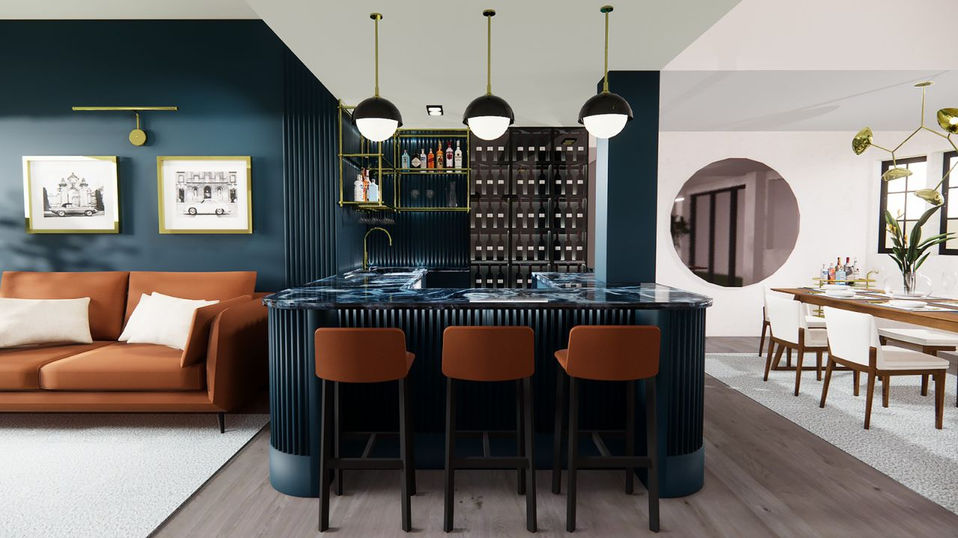 I was commissioned to design and 3d model of a residential dining area with a bar based on the client's brief.